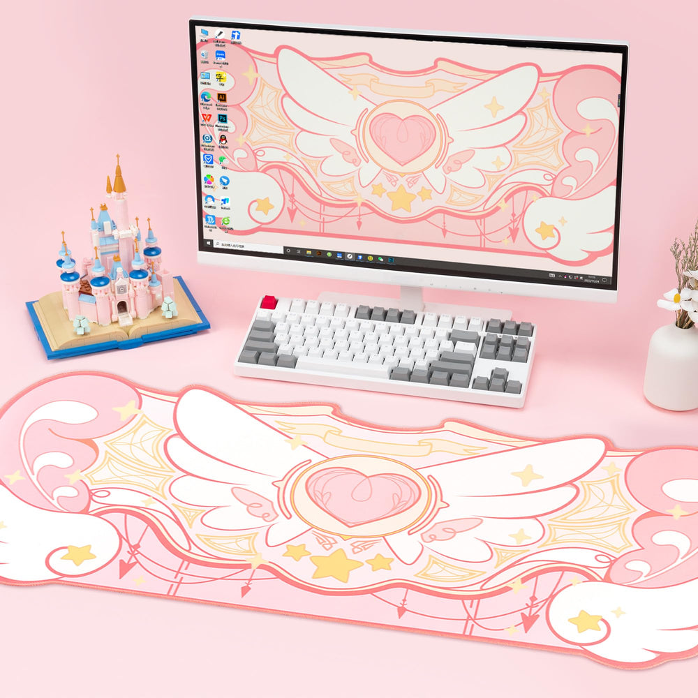 GeekShare Large Gaming Mouse Pad Kawaii Pink Non-Slip Rubber Back Mouse Pad Big Waterproof Desk Mat for Keyboard and Mouse Perfect for Gaming,or Home Office Work - Star Wings(Super Dense Cloth)