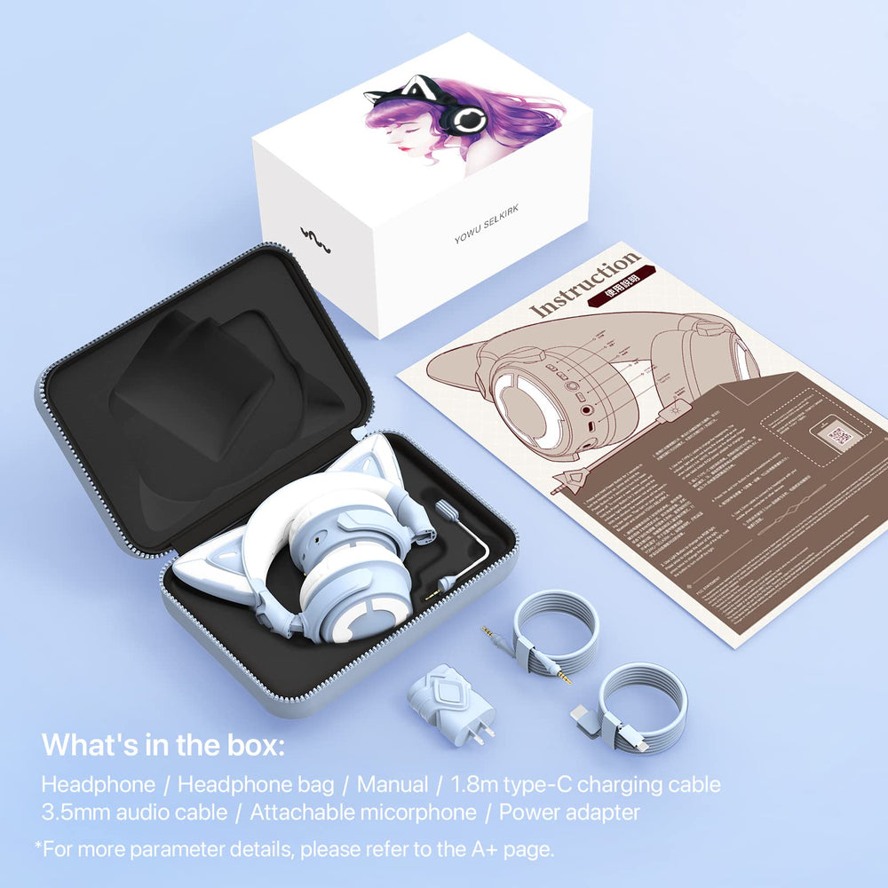 YOWU Cat Ear Headphones 4, RGB Wireless & Wired Gaming Headset with Microphone for PC/PS4/PS5/XBOX/Switch -Noise Reduction, Customizable Lighting and Effect for Gamer (Blue)